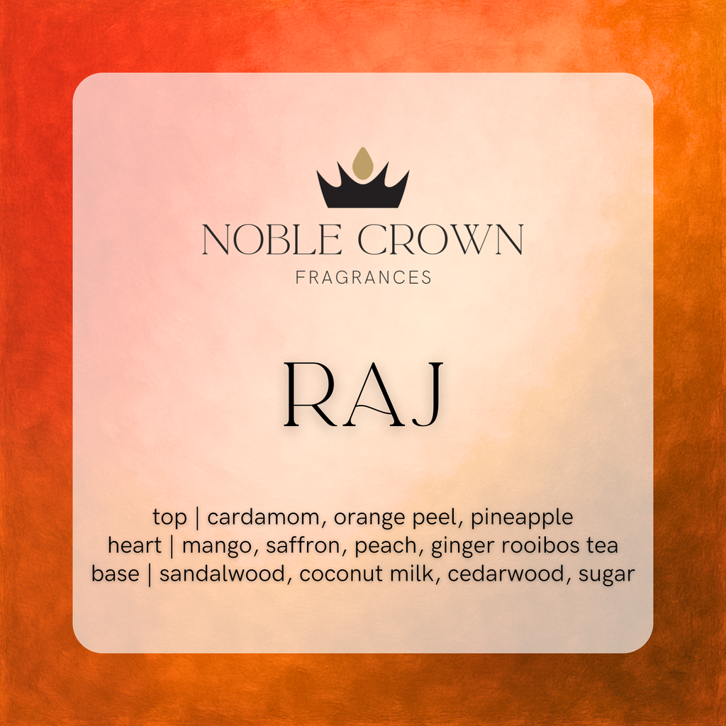 This scent was inspired by a reign defined by celebration - music in the streets, gold-adorned skin, and the sweet, sunlit air of a kingdom alive with color. Raj captures that jubilant spirit in a fragrance that is as decadent as it is bright.