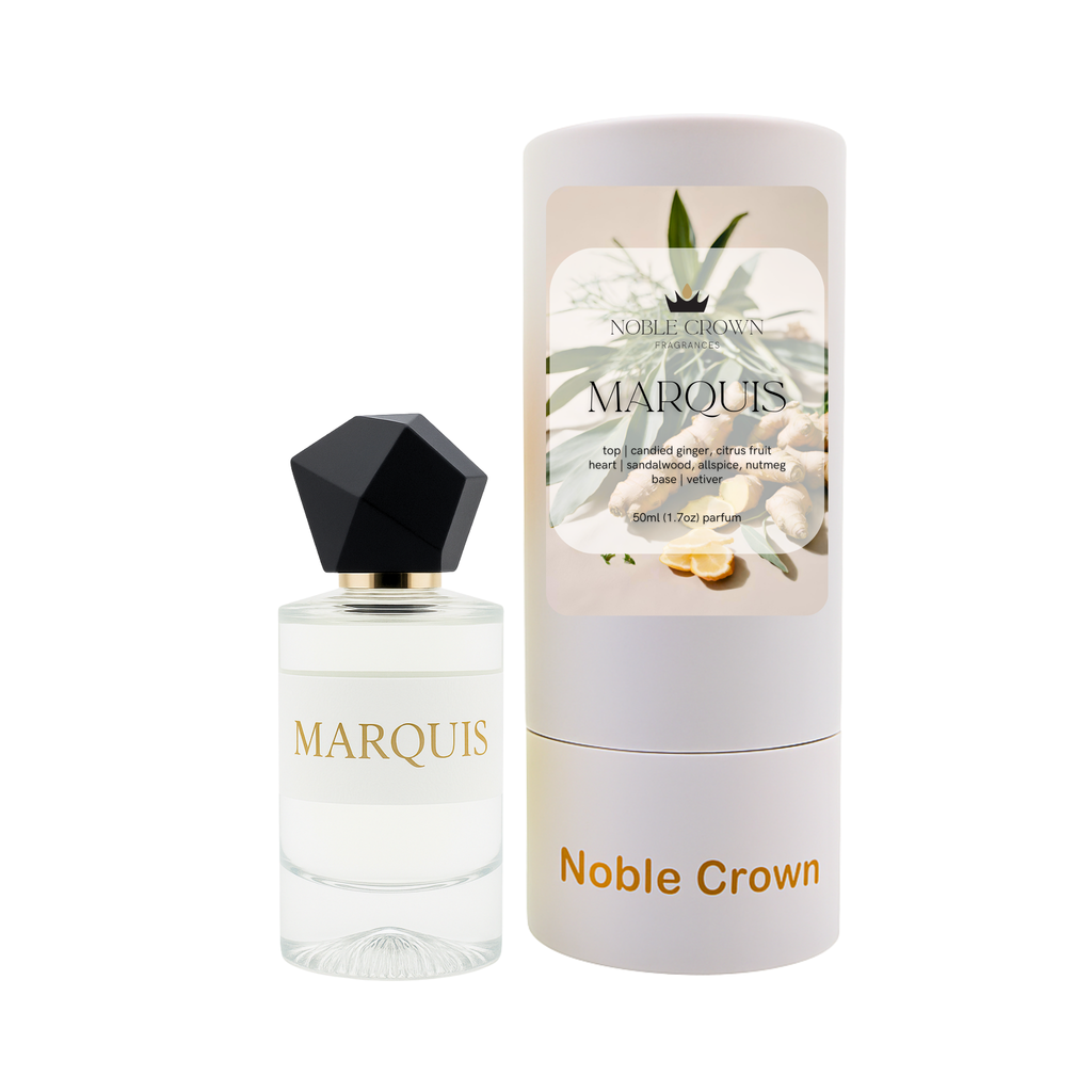 A citrus-spice eau de parfum that blends candied ginger, warm woods, and subtle nutmeg into a bright yet grounded fragrance. Marquis is sweet, zesty, and lightly spiced—designed for effortless wear all day long.