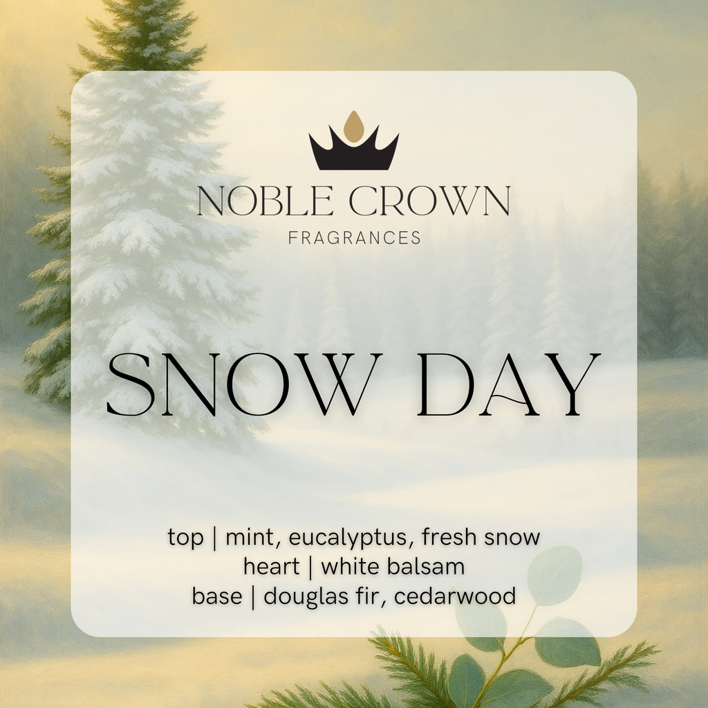 Fresh and invigorating, Snow Day captures the brightness of winter air indoors. Cool mint and eucalyptus open with a frosty clarity, while fresh snow and white balsam bring the clean stillness of the season. Perfect for living rooms, entryways, or spaces where you want a refreshing holiday lift.